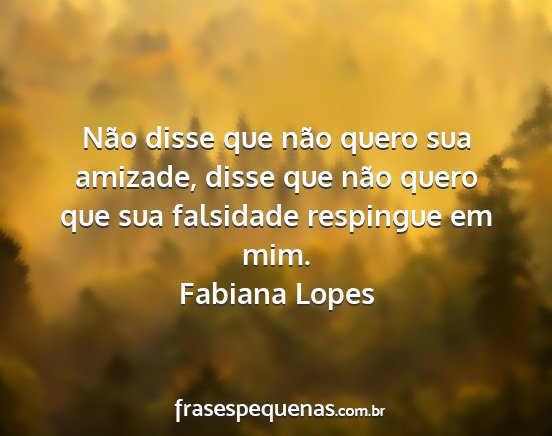 Não disse que não quero sua amizade, disse que não quero que sua falsidade respingue em mim.Fabiana Lopes