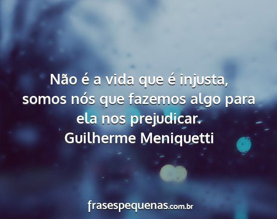 Não é a vida que é injusta, somos nós que fazemos algo para ela nos prejudicar.