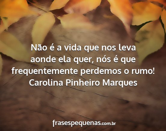 Não é a vida que nos leva aonde ela quer, nós é que frequentemente perdemos o rumo!Carolina Pinheiro Marques