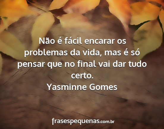Não é fácil encarar os problemas da vida, mas é só pensar que no final vai dar tudo certo.Yasminne Gomes