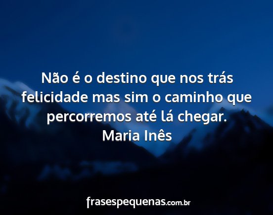 Não é o destino que nos trás felicidade mas sim o caminho que percorremos até lá chegar.