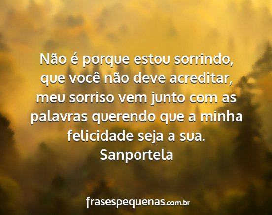 Não é porque estou sorrindo, que você não deve acreditar, meu sorriso vem junto com as palavras querendo que a minha felicidade seja a sua.Sanportela