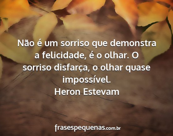 Não é um sorriso que demonstra a felicidade, é o olhar. O sorriso disfarça, o olhar quase impossível.Heron Estevam