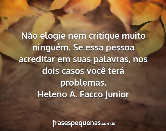 Não elogie nem critique muito ninguém. Se essa pessoa acreditar em suas palavras, nos dois casos você terá problemas.Heleno A. Facco Junior