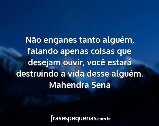 Não enganes tanto alguém, falando apenas coisas que desejam ouvir, você estará destruindo a vida desse alguém.Mahendra Sena