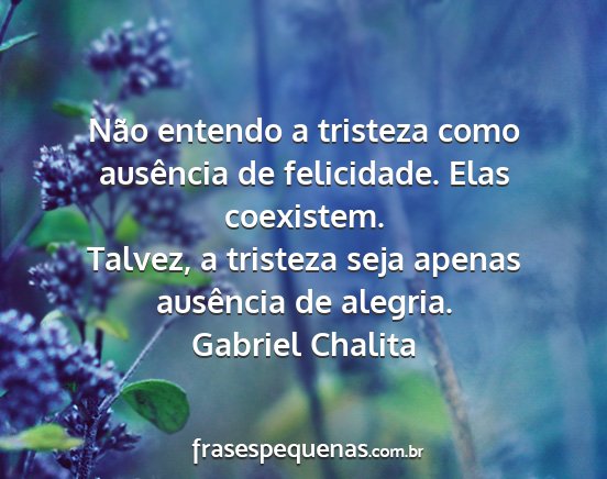Talvez, a tristeza seja apenas ausência de alegria.Gabriel Chalita