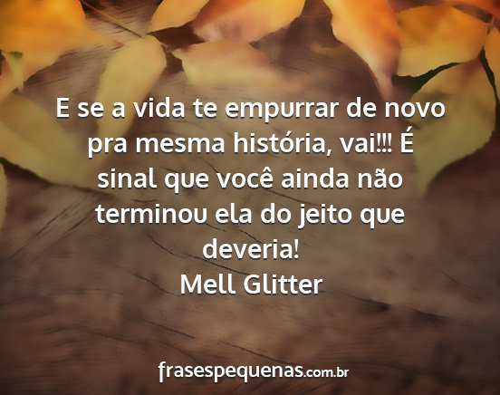 E se a vida te empurrar de novo pra mesma história, vai!!! É sinal que você ainda não terminou ela do jeito que deveria!Mell Glitter