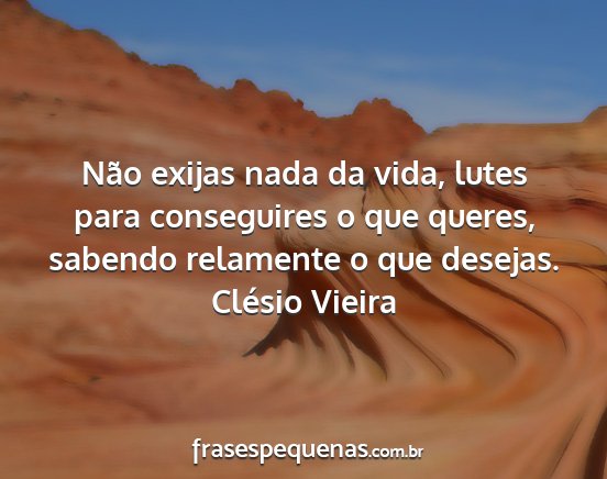 Não exijas nada da vida, lutes para conseguires o que queres, sabendo relamente o que desejas.Clésio Vieira