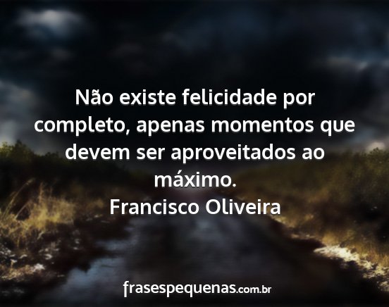Não existe felicidade por completo, apenas momentos que devem ser aproveitados ao máximo.Francisco Oliveira