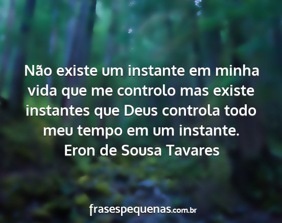 Não existe um instante em minha vida que me controlo mas existe instantes que Deus controla todo meu tempo em um instante.Eron de Sousa Tavares