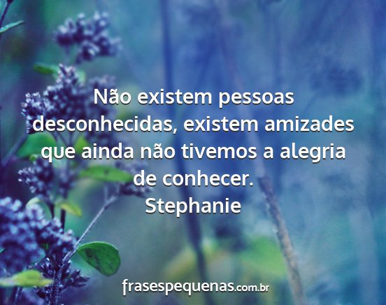 Não existem pessoas desconhecidas, existem amizades que ainda não tivemos a alegria de conhecer.Stephanie