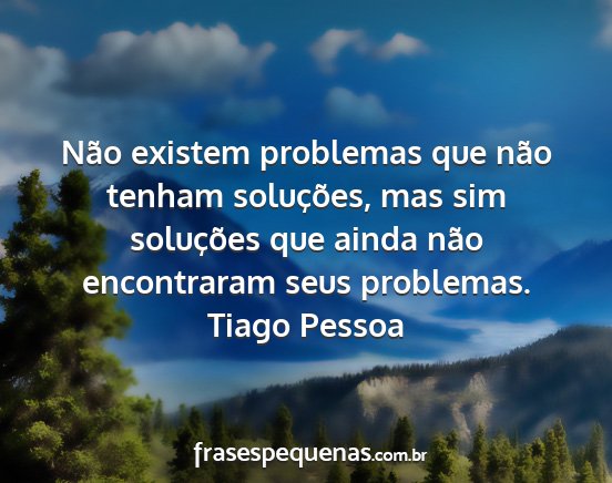 Não existem problemas que não tenham soluções, mas sim soluções que ainda não encontraram seus problemas.Tiago Pessoa