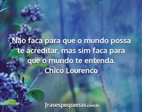 Não faca para que o mundo possa te acreditar, mas sim faca para que o mundo te entenda.Chico Lourenco