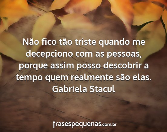 Não fico tão triste quando me decepciono com as pessoas, porque assim posso descobrir a tempo quem realmente são elas.Gabriela Stacul