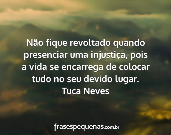 Não fique revoltado quando presenciar uma injustiça, pois a vida se encarrega de colocar tudo no seu devido lugar.Tuca Neves