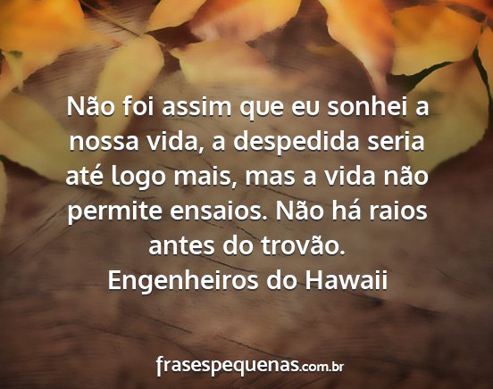 Não foi assim que eu sonhei a nossa vida, a despedida seria até logo mais, mas a vida não permite ensaios. Não há raios antes do trovão.Engenheiros do Hawaii