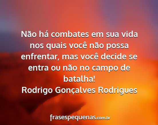 Não há combates em sua vida nos quais você não possa enfrentar, mas você decide se entra ou não no campo de batalha!Rodrigo Gonçalves Rodrigues
