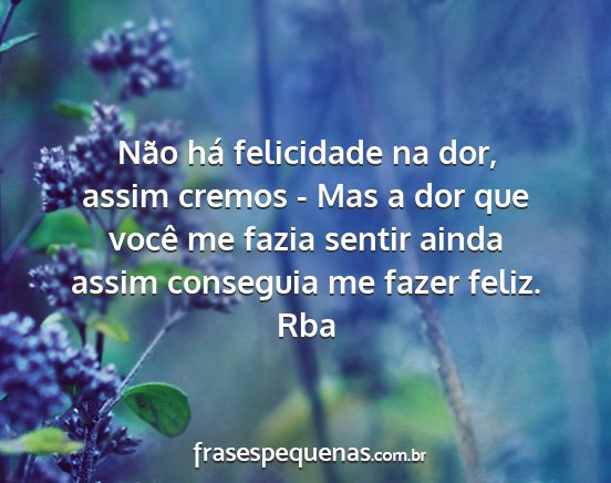 Não há felicidade na dor, assim cremos - Mas a dor que você me fazia sentir ainda assim conseguia me fazer feliz.Rba