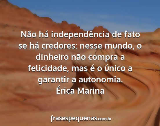 Não há independência de fato se há credores: nesse mundo, o dinheiro não compra a felicidade, mas é o único a garantir a autonomia.Érica Marina