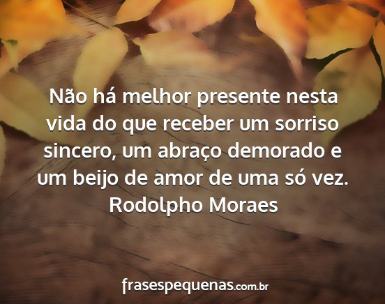 Não há melhor presente nesta vida do que receber um sorriso sincero, um abraço demorado e um beijo de amor de uma só vez.Rodolpho Moraes