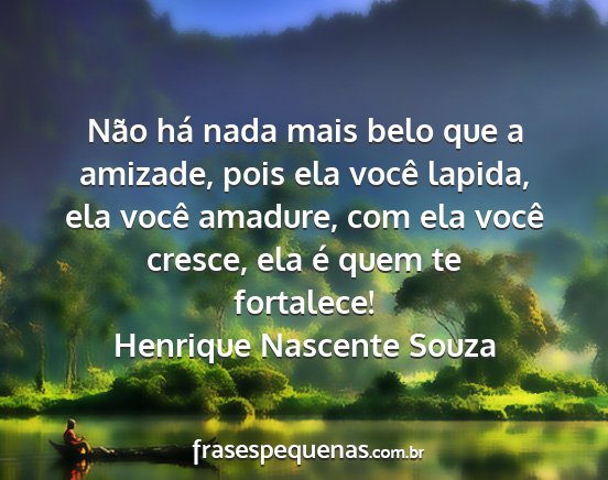 Não há nada mais belo que a amizade, pois ela você lapida, ela você amadure, com ela você cresce, ela é quem te fortalece!Henrique Nascente Souza