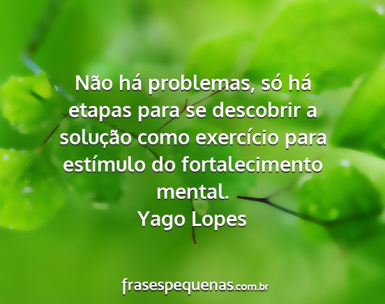 Não há problemas, só há etapas para se descobrir a solução como exercício para estímulo do fortalecimento mental.Yago Lopes
