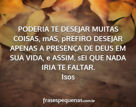 PODERIA TE DESEJAR MUITAS COISAS, mAS, pREFIRO DESEJAR APENAS A PRESENÇA DE DEUS EM SUA VIDA, e ASSIM, sEI QUE NADA IRIA TE FALTAR.Isos