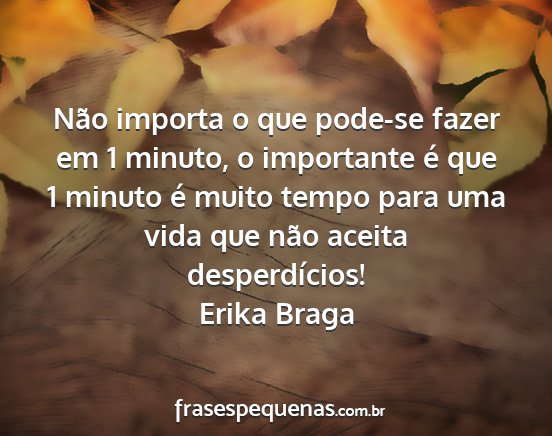 Não importa o que pode-se fazer em 1 minuto, o importante é que 1 minuto é muito tempo para uma vida que não aceita desperdícios!Erika Braga