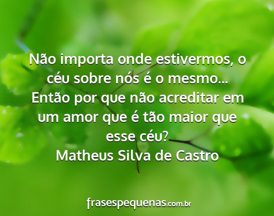 Então por que não acreditar em um amor que é tão maior que esse céu?Matheus Silva de Castro