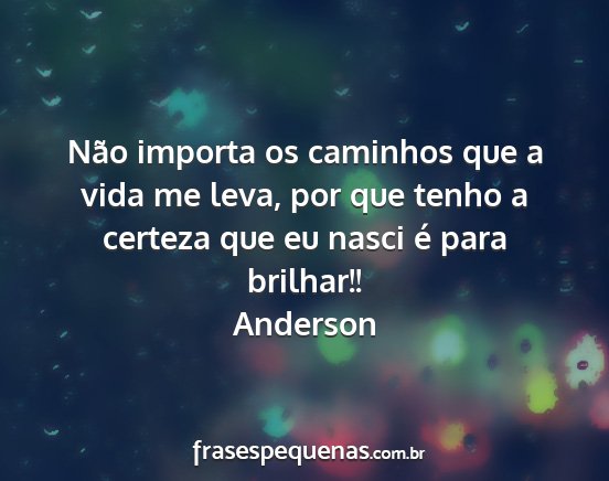 Não importa os caminhos que a vida me leva, por que tenho a certeza que eu nasci é para brilhar!!Anderson