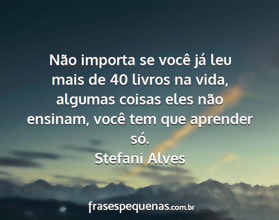 Não importa se você já leu mais de 40 livros na vida, algumas coisas eles não ensinam, você tem que aprender só.Stefani Alves