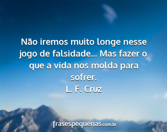 Não iremos muito longe nesse jogo de falsidade... Mas fazer o que a vida nos molda para sofrer.L. F. Cruz