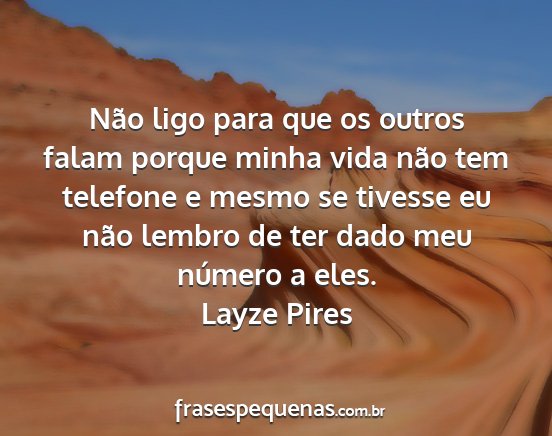 Não ligo para que os outros falam porque minha vida não tem telefone e mesmo se tivesse eu não lembro de ter dado meu número a eles.Layze Pires