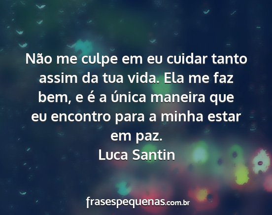 Não me culpe em eu cuidar tanto assim da tua vida. Ela me faz bem, e é a única maneira que eu encontro para a minha estar em paz.Luca Santin
