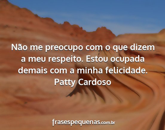 Não me preocupo com o que dizem a meu respeito. Estou ocupada demais com a minha felicidade.Patty Cardoso