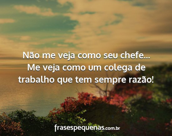 Não me veja como seu chefe... Me veja como um colega de trabalho que tem sempre razão!
