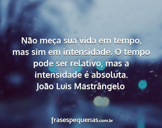 Não meça sua vida em tempo, mas sim em intensidade. O tempo pode ser relativo, mas a intensidade é absoluta.João Luis Mastrângelo