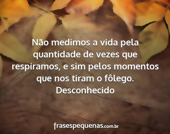 Não medimos a vida pela quantidade de...