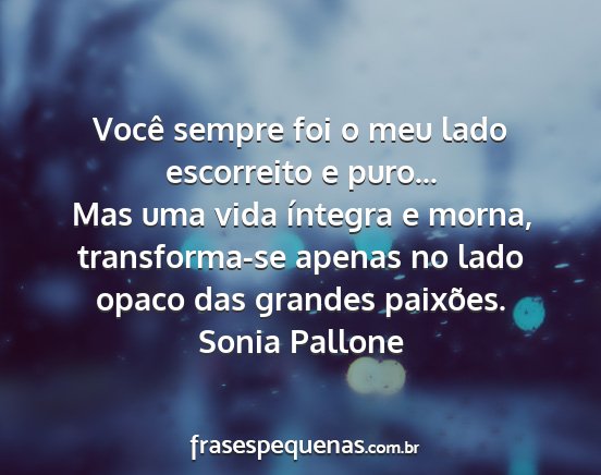 transforma-se apenas no lado opaco das grandes paixões.Sonia Pallone