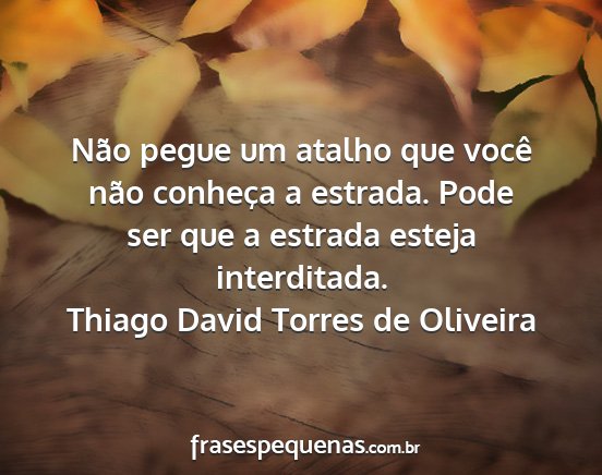 Não pegue um atalho que você não conheça a estrada. Pode ser que a estrada esteja interditada.Thiago David Torres de Oliveira