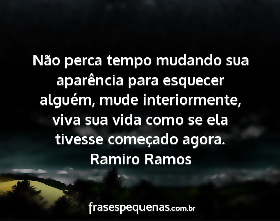 Não perca tempo mudando sua aparência para esquecer alguém, mude interiormente, viva sua vida como se ela tivesse começado agora.Ramiro Ramos