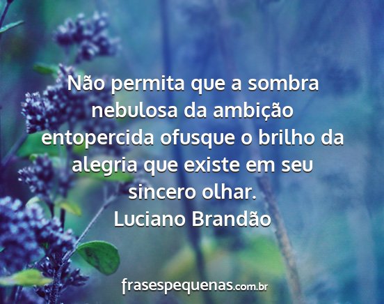 Não permita que a sombra nebulosa da ambição entopercida ofusque o brilho da alegria que existe em seu sincero olhar.Luciano Brandão