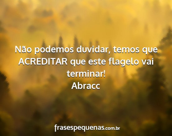 Não podemos duvidar, temos que ACREDITAR que este flagelo vai terminar!