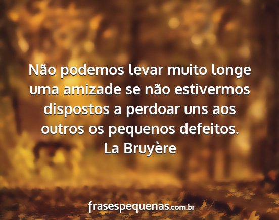 Não podemos levar muito longe uma amizade se não estivermos dispostos a perdoar uns aos outros os pequenos defeitos.La Bruyère