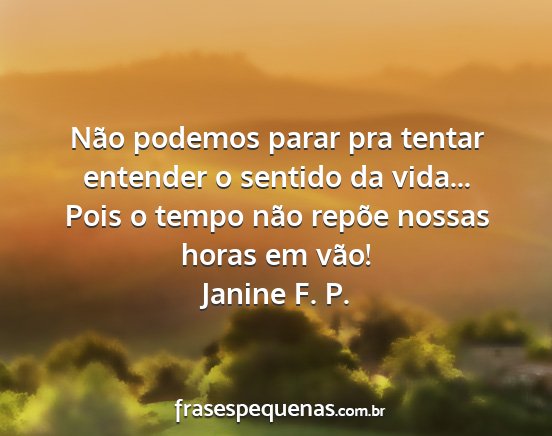 Não podemos parar pra tentar entender o sentido da vida... Pois o tempo não repõe nossas horas em vão!Janine F. P.