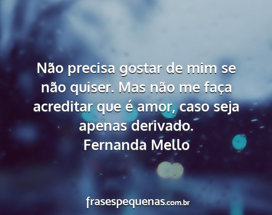 Não precisa gostar de mim se não quiser. Mas não me faça acreditar que é amor, caso seja apenas derivado.Fernanda Mello