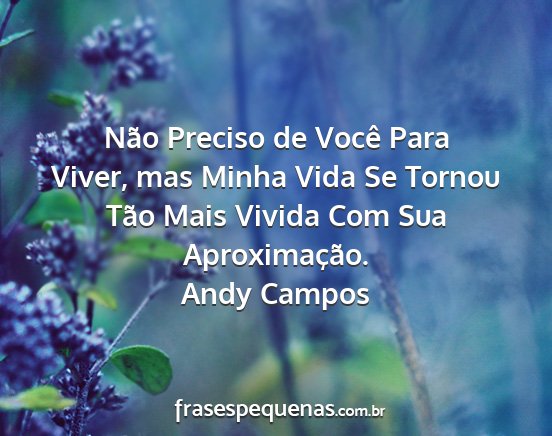 Não Preciso de Você Para Viver, mas Minha Vida Se Tornou Tão Mais Vivida Com Sua Aproximação.Andy Campos