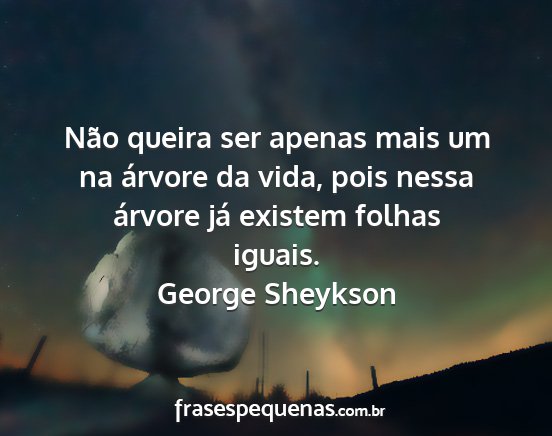 Não queira ser apenas mais um na árvore da vida, pois nessa árvore já existem folhas iguais.George Sheykson