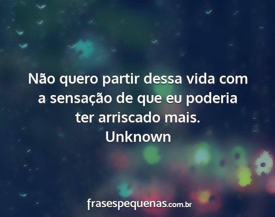 Não quero partir dessa vida com a sensação de que eu poderia ter arriscado mais.