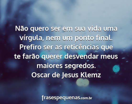 Não quero ser em sua vida uma vírgula, nem um ponto final. Prefiro ser as reticências que te farão querer desvendar meus maiores segredos.Oscar de Jesus Klemz